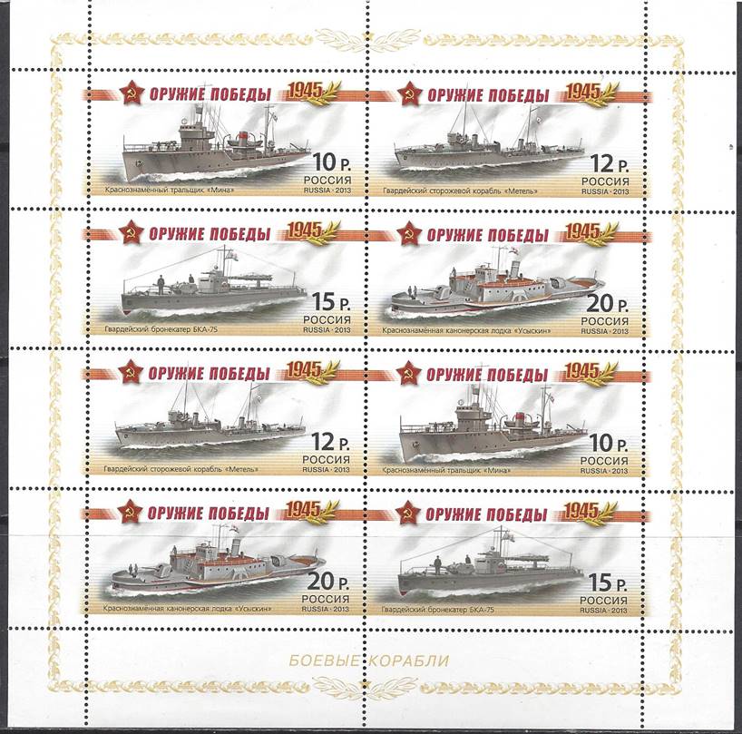 Russia 2013 7945-8 um £15.00 WW2 Warships sheet -